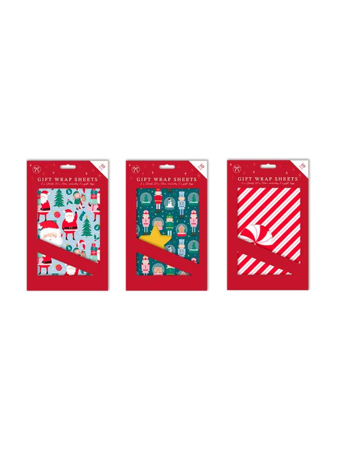 Gift Wrap Xmas Sheets 5pk - With Tags
